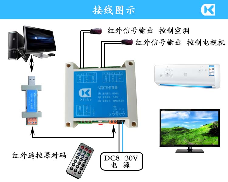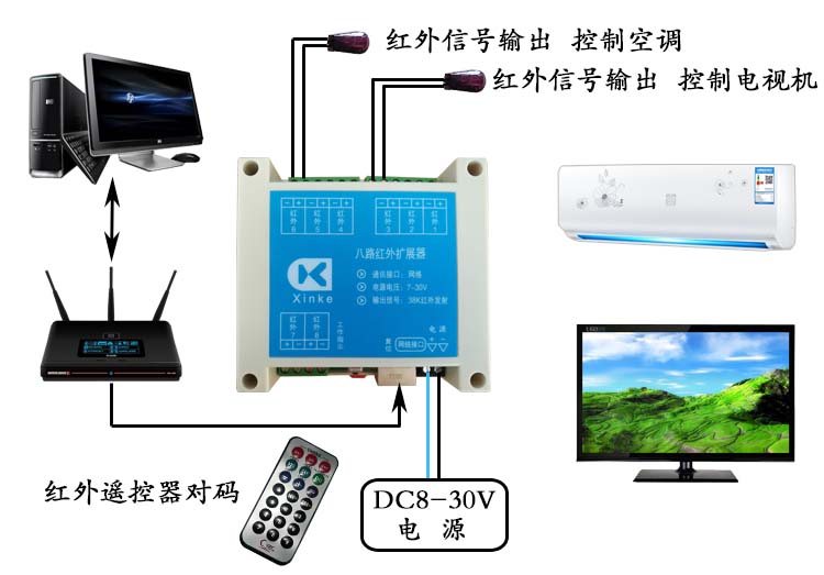 八路紅外擴(kuò)展器 八路獨(dú)立通道 中控紅外擴(kuò)展 智能狗編程